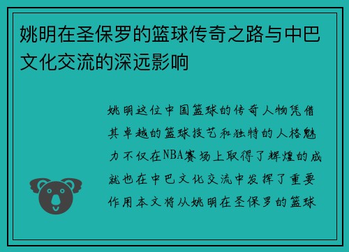 姚明在圣保罗的篮球传奇之路与中巴文化交流的深远影响