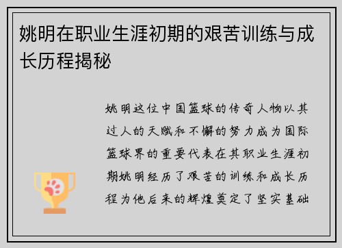 姚明在职业生涯初期的艰苦训练与成长历程揭秘